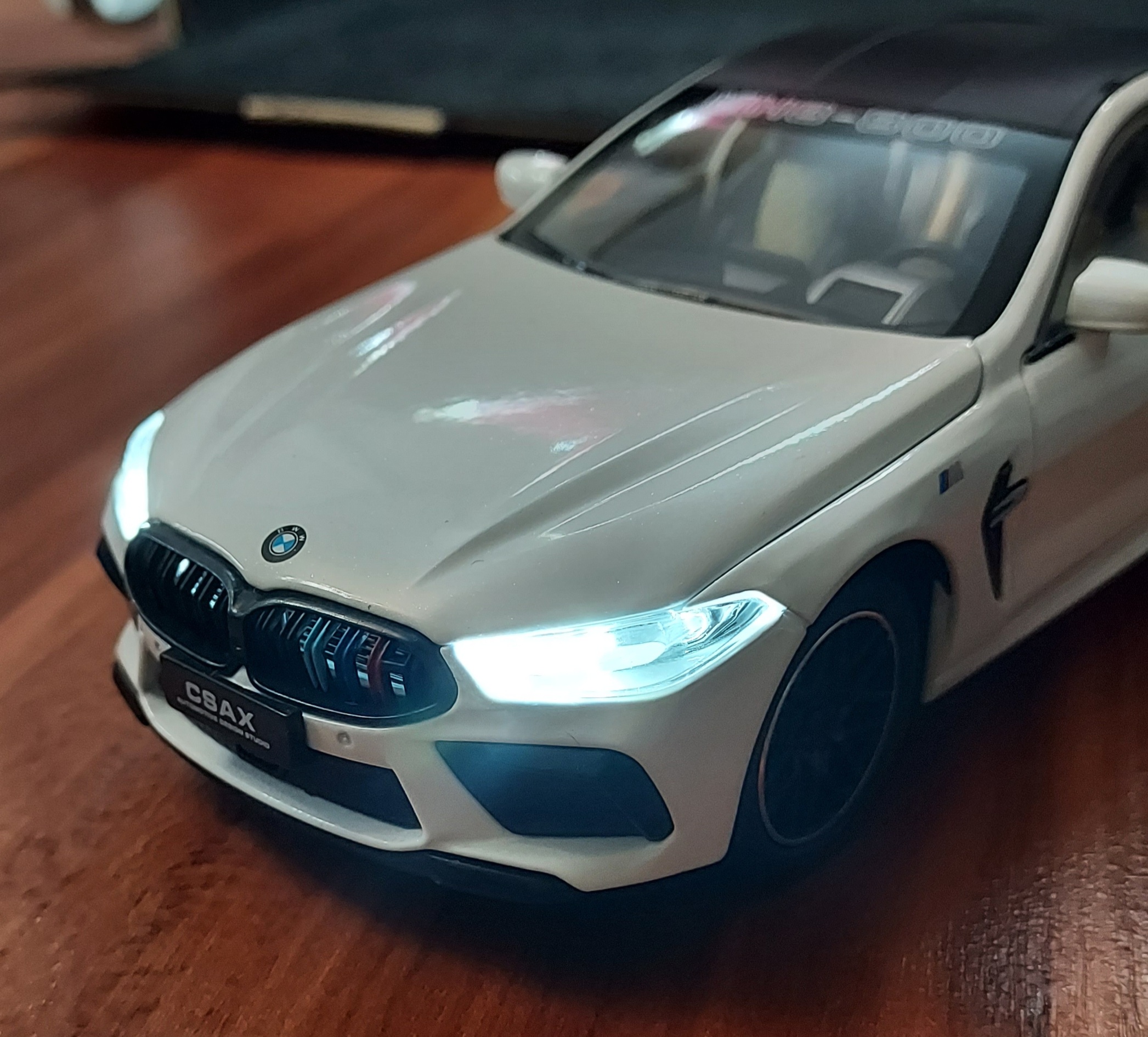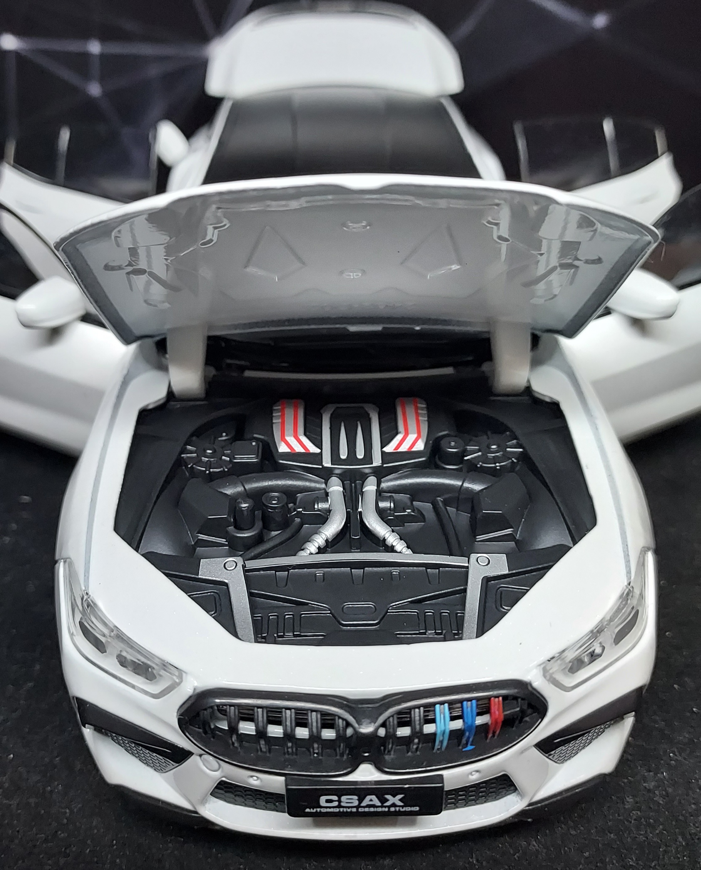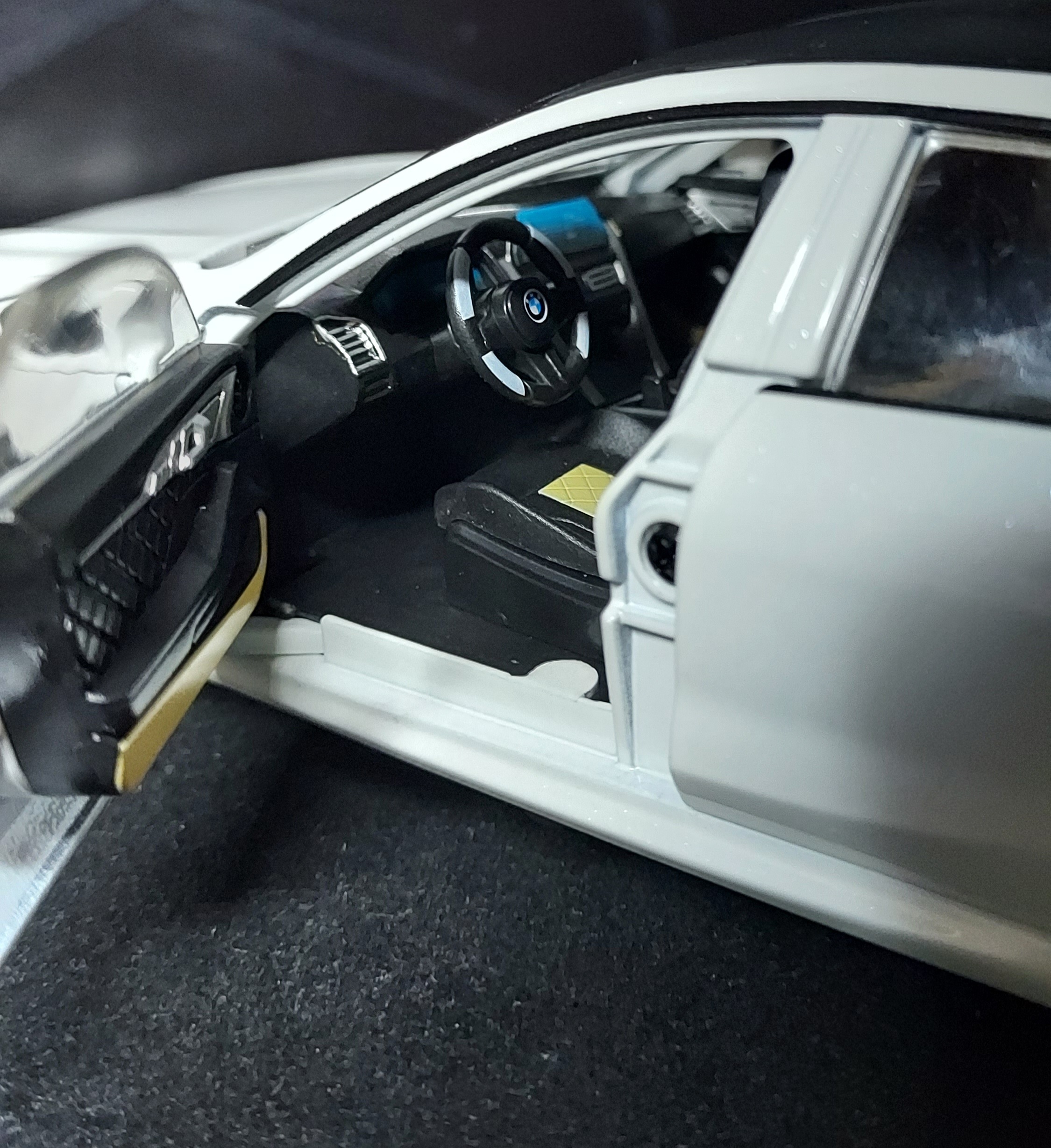 مقیاس ۱:۲۴ ۶ در بازشو در باک بازشو فرمان متحرک بوق روی فرمان چراغ ها روشن شو با کلید ۲ حالته تعلیق هر ۴ چرخ مکنده باز کننده درب ب همراه دارد لایسنس اصلی bmw